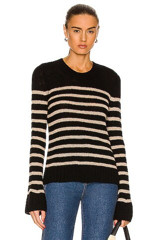 KHAITE Tilda Crewneck Marnier Stripe Sweater in Black