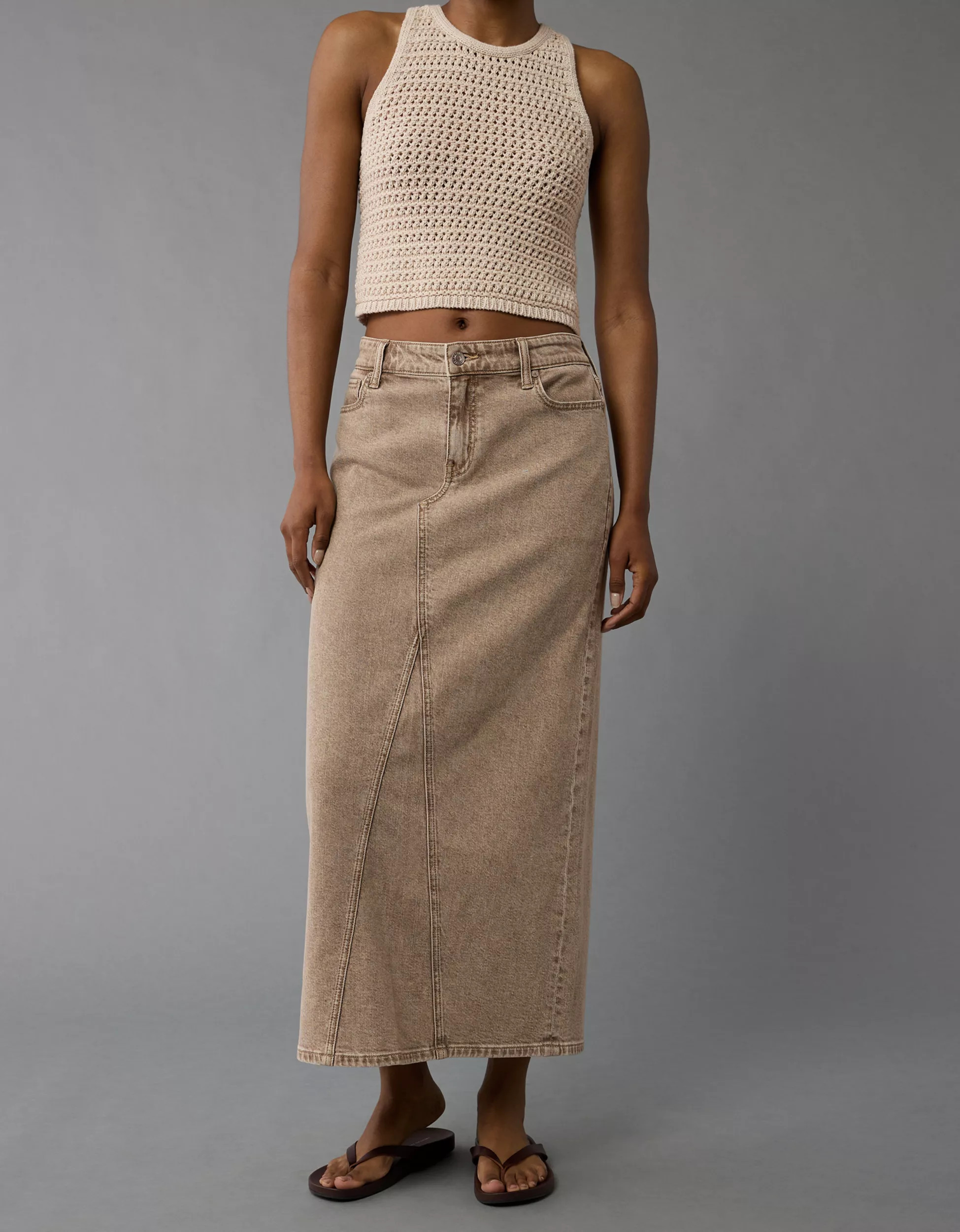 colorful midi and maxi denim skirts