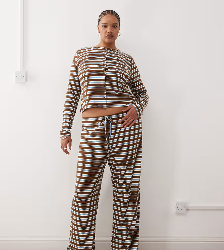 COLLUSION Plus relaxed rib knit striped pants-Multi