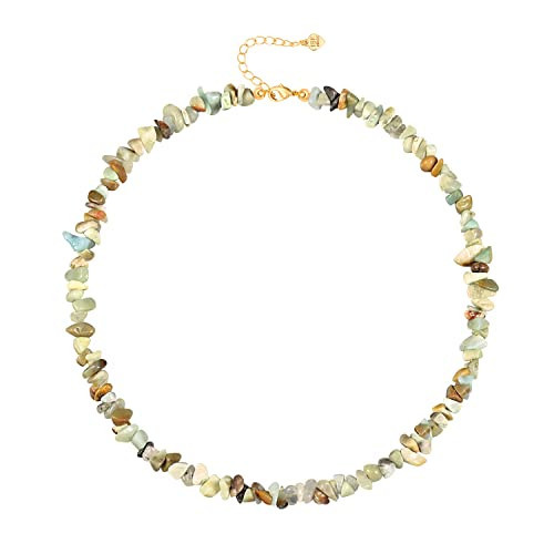 Aobei Pearl Irregular Natural Amazonite Beads Choker Colorful Tumbled Chip Beaded Necklace Bohemian Gemstone Layering Jewelry for Women 15’’
