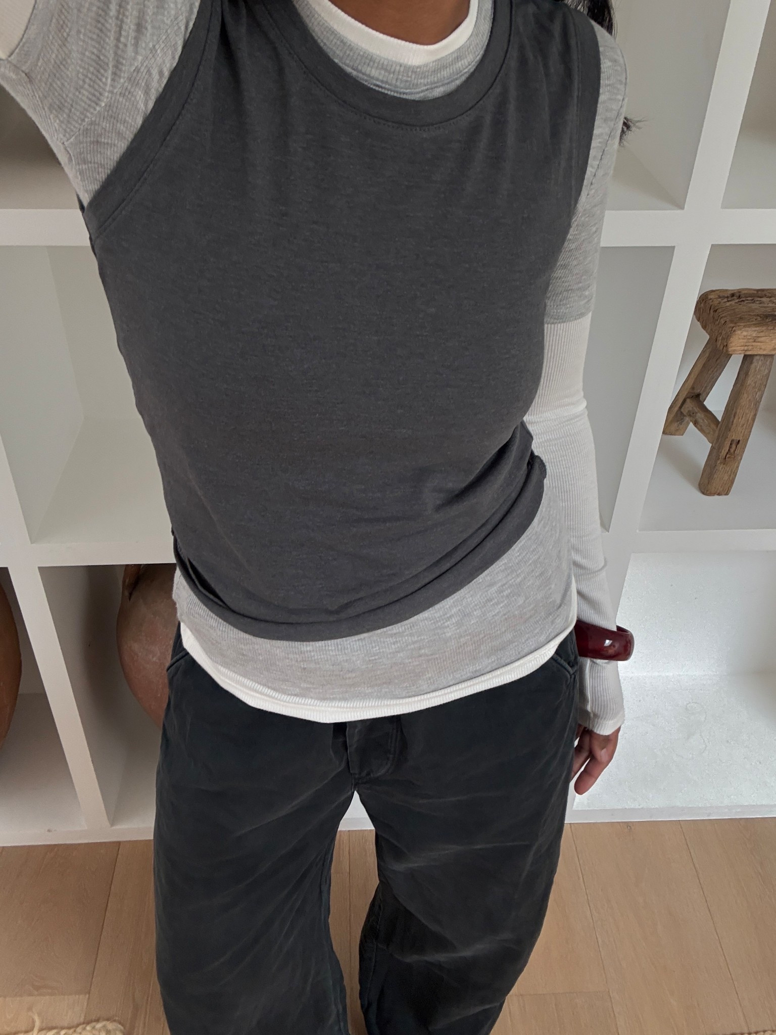 Worth noting: each pair varies slightly in tone — some greener, some softer — which makes it harder (and better). The lighter green still feels the most me on paper — clean, classic, easy — but the blue has something about it. Same cut, completely different energy. Going back next week to try the right size in the green before deciding what stays.