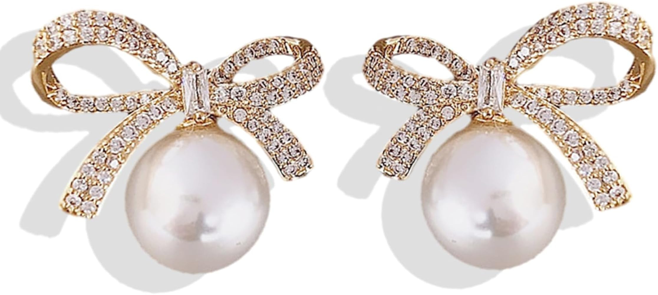 Christmas Earrings Womens Gifts for Christmas Bow Earrings Rhinestone Pearl Bow Earrings for Wome...