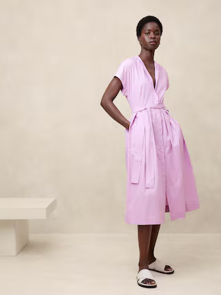 Poplin Tie-Waist Midi Dress