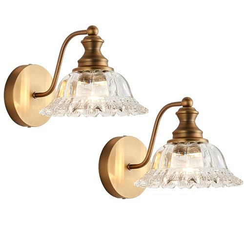 XIEDUN Vintage Wall Sconces Brass Wall Lights for Living Room Bathroom Sconces 2Pack