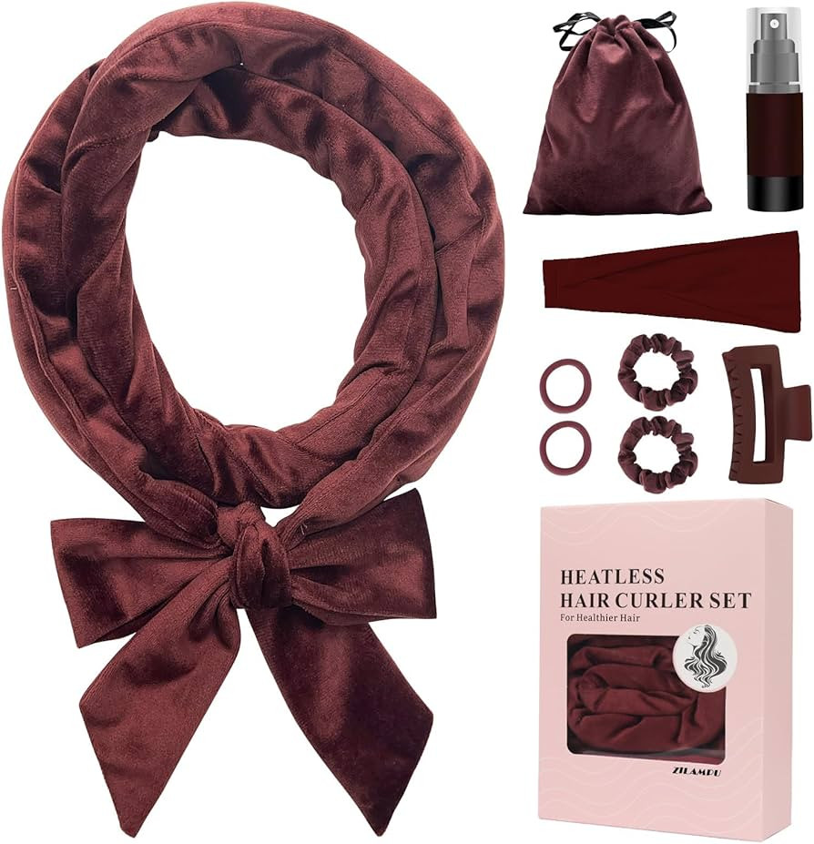 ZILAMPU Heatless Curling Rod Headband, No Heat Overnight Hair Curler Headband, 70" Long Velour La...