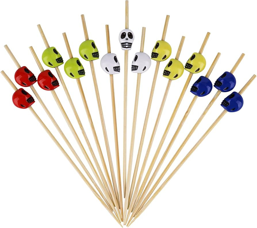 Minisland Multi-colored Halloween Skull Cocktail Picks, 4.7 Inch Long Bamboo Fancy Toothpicks for...