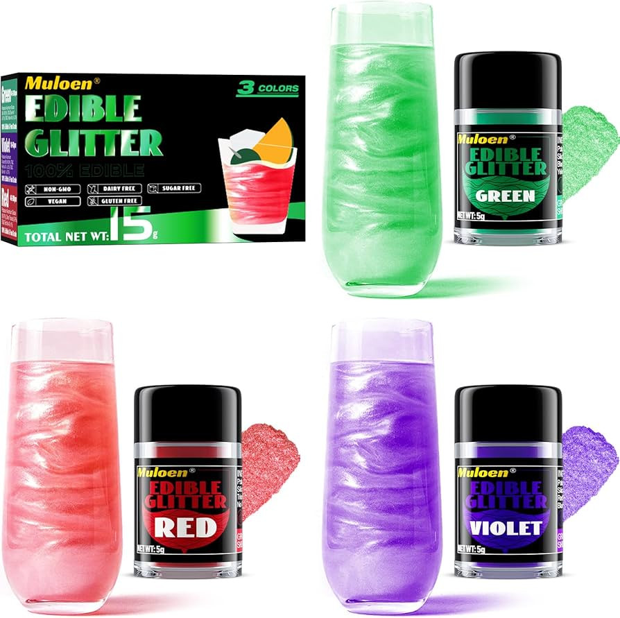 Edible Glitter, 3 Colors 100% Edible Glitter for Drinks, Cake Decorating Supplies, Cookie Decorat...