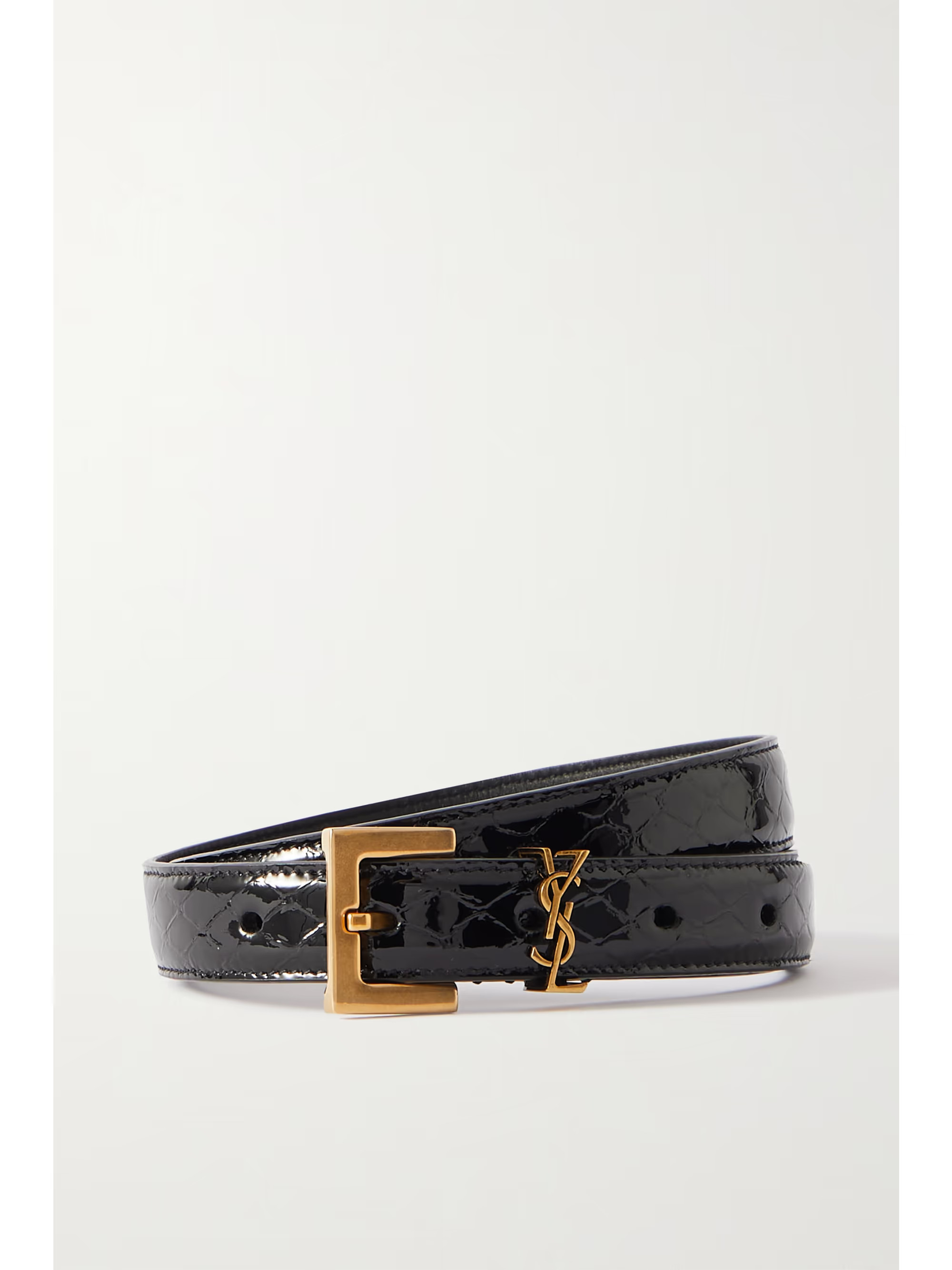 Snake-print glossed-leather belt
