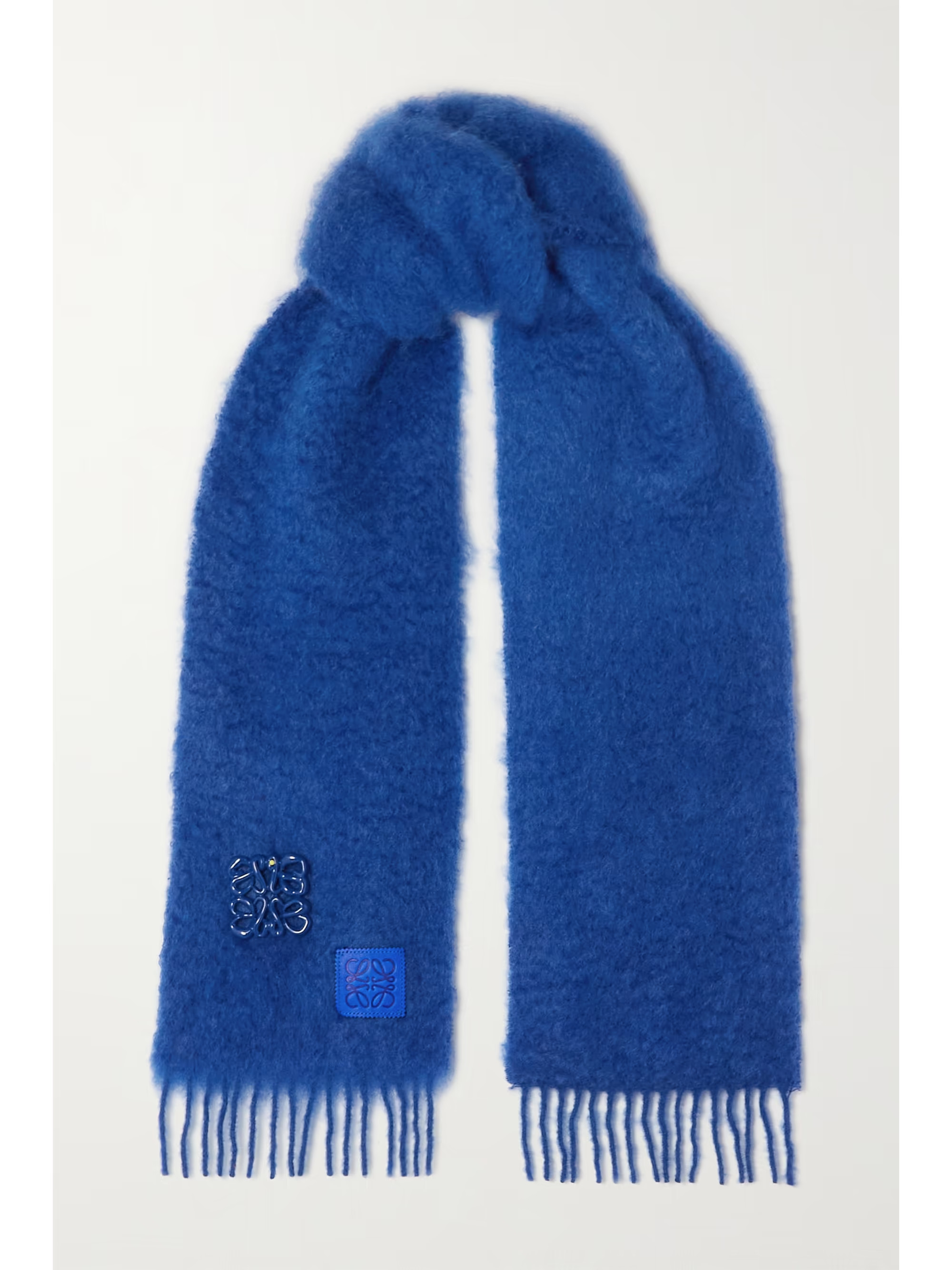 Appliquéd fringed mohair-blend scarf