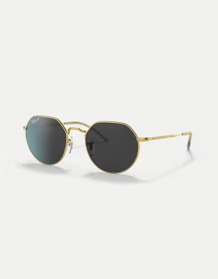 Ray-Ban jack irregular polarised sunglasses in gold with black lens in legend gold | ASOS