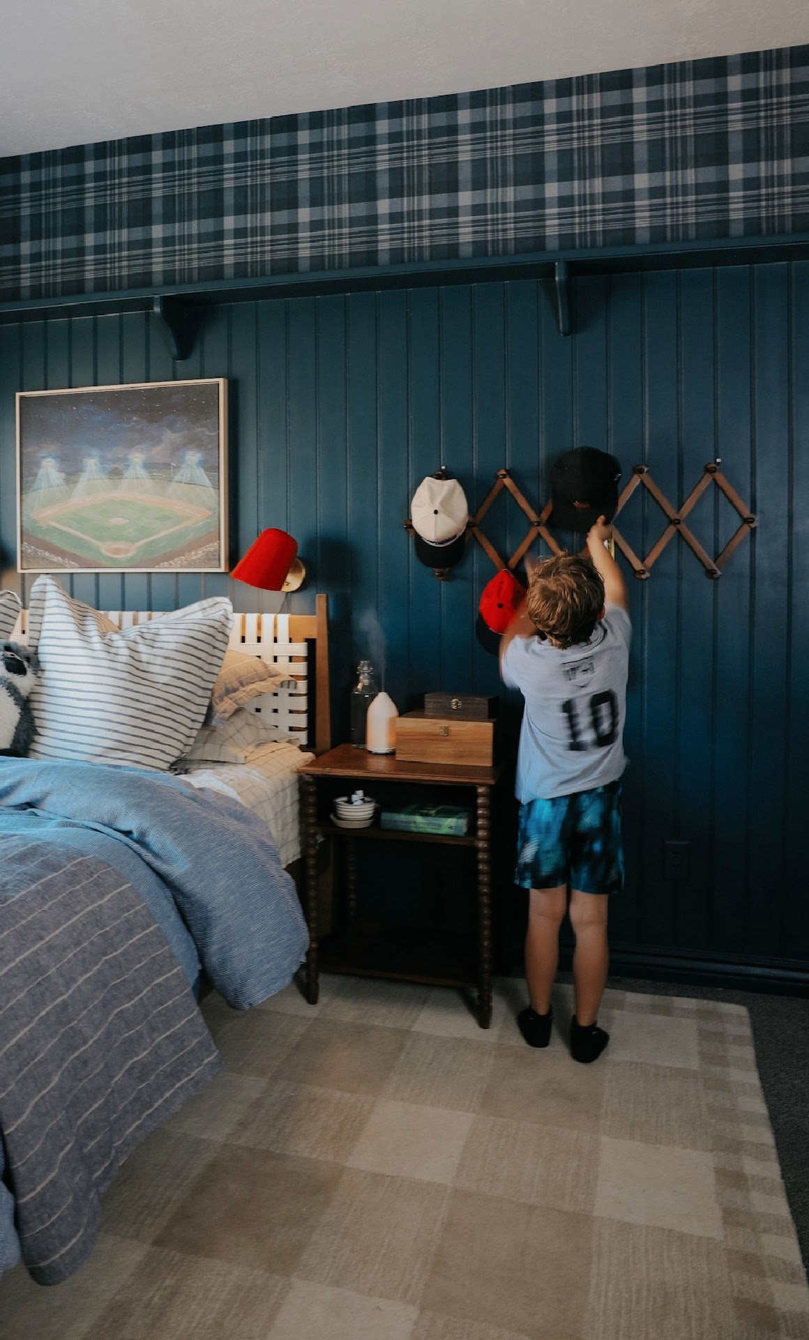 Now his room matches how cool he is & all the things he loves. Paint is Hague Blue Farrow & Ball