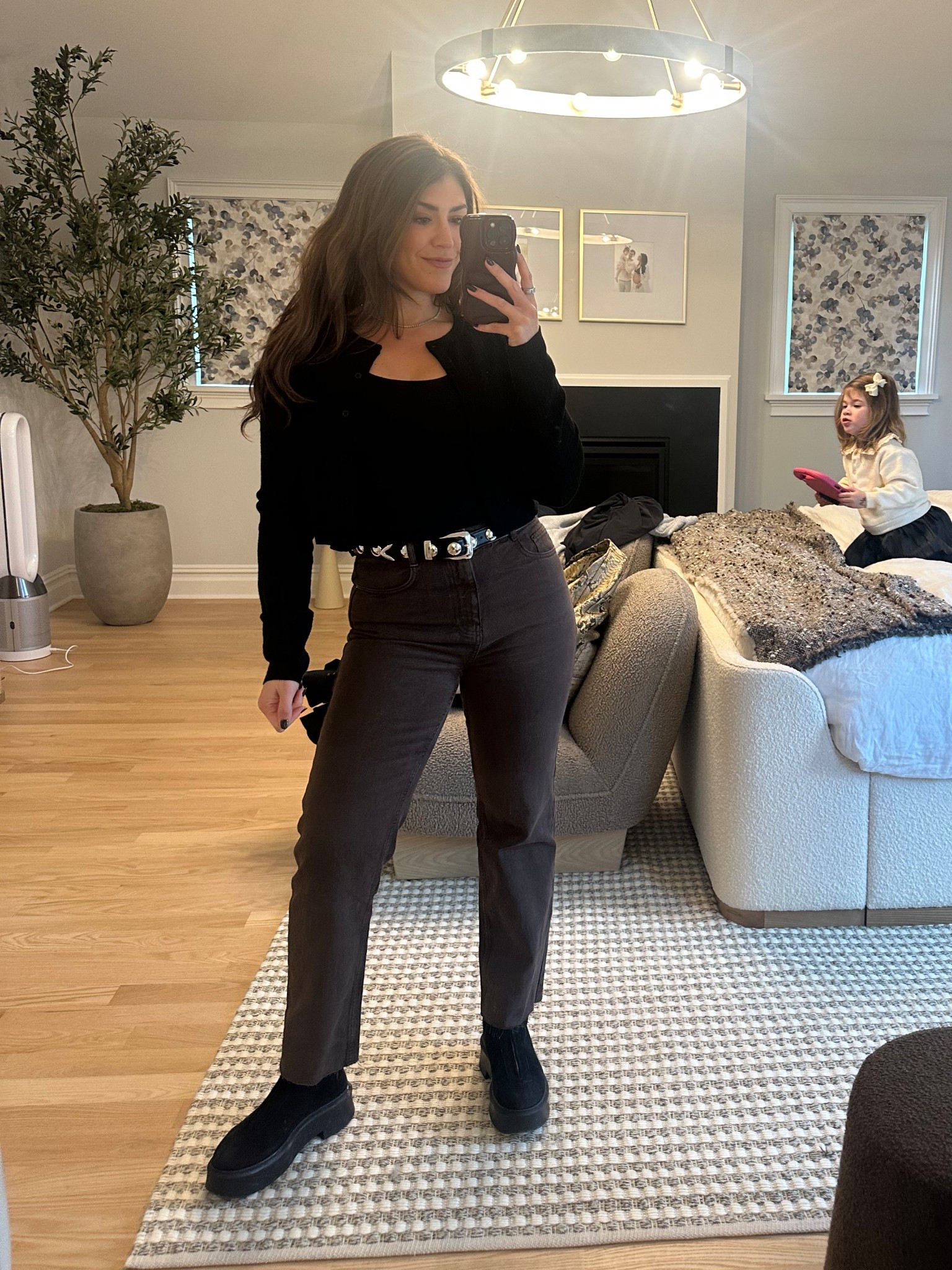Size 42 in pants ! Cozy comfy elevated go to look with my favorite investment pieces