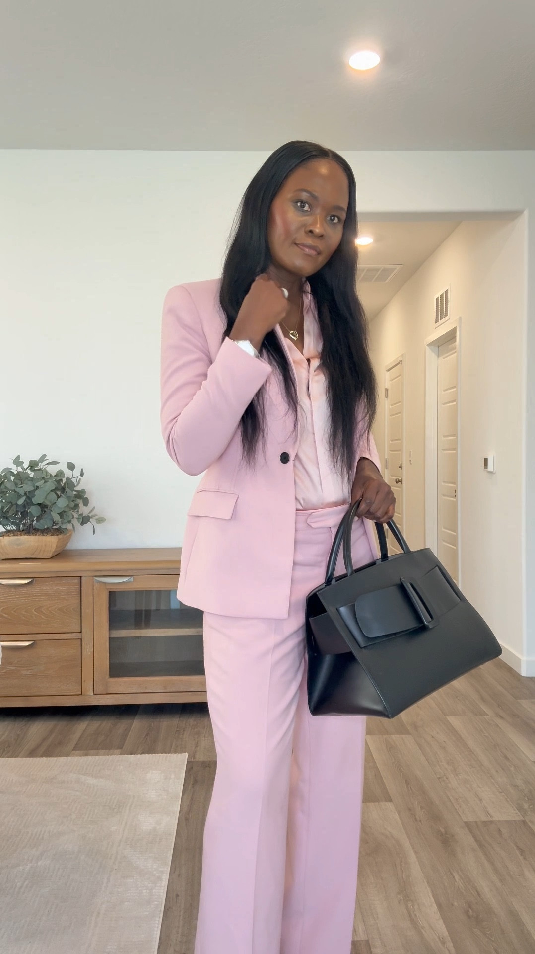 No boring work outfit in 2025! A perfect chic blazer, satin blouse and pants for less than $99.