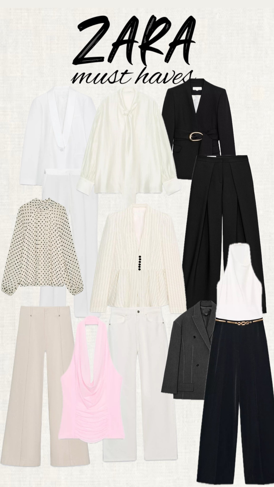 Fresh spring outfits you need right now! These @Zara  must-haves are perfect for building a chic and effortless wardrobe this season. Think light layers, neutral tones and timeless pieces that elevate every look. Save this pin for your next shopping inspiration! ✨