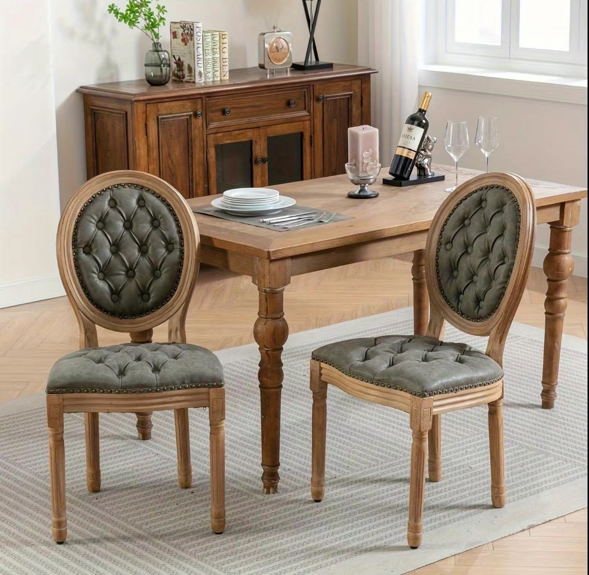 Juego de 6 sillas de comedor francesas de estilo campestre, sillas tapizadas de piel sintética c... | Amazon (US)