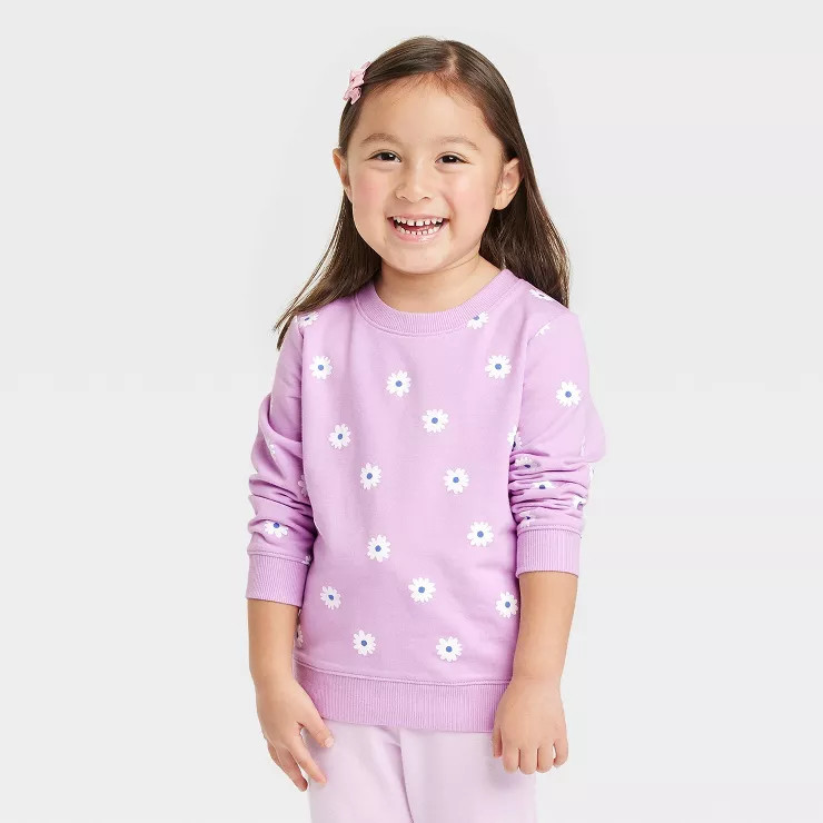 Toddler Girls' Floral French Terry Pullover - Cat & Jack™ Purple