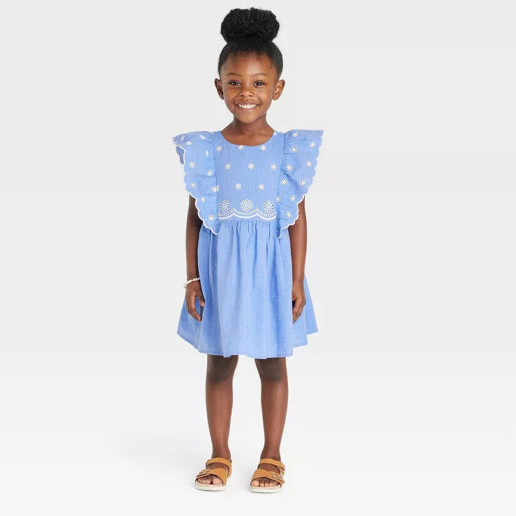 Toddler Girls' Chambray Lace Dress - Cat & Jack™ Blue