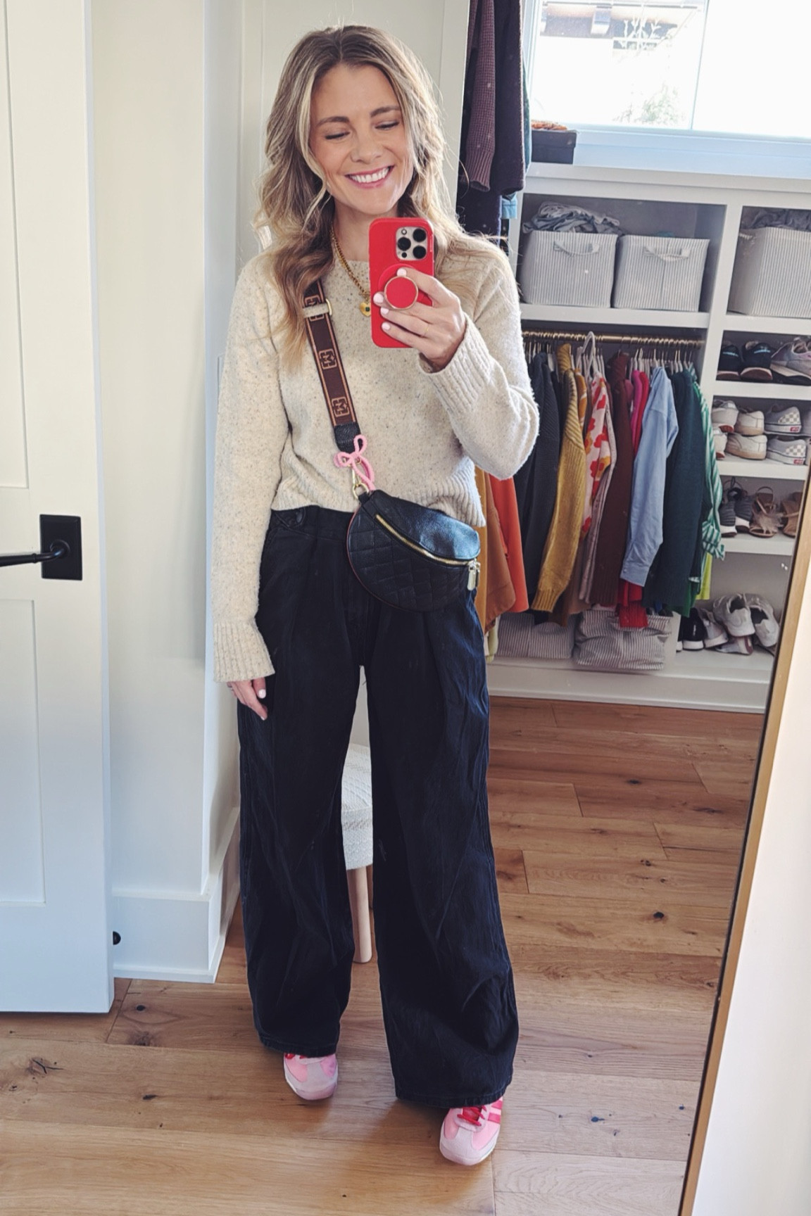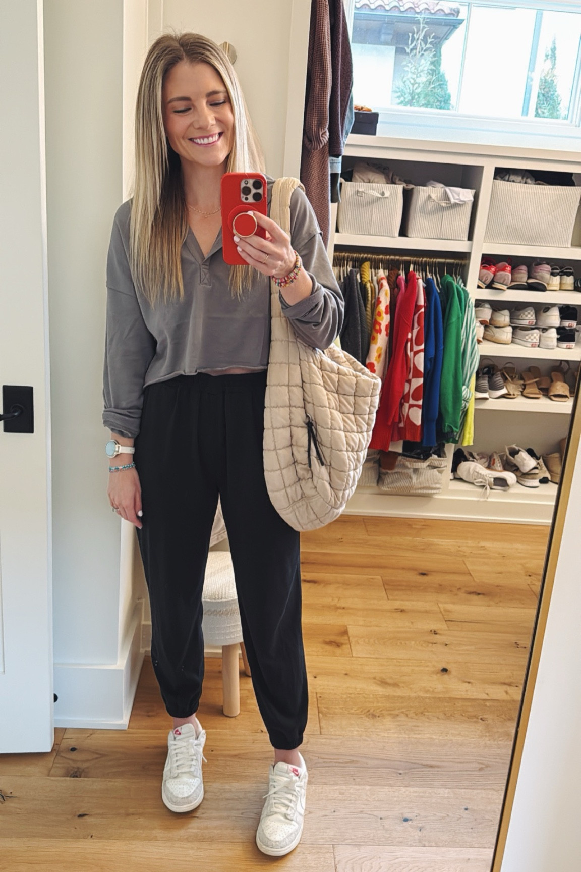 Such a cozy sweatshirt (I’d size down!) and you cannot beat the comfort of these Vuori joggers. (I like to size up in Vuori joggers for extra room in my hips + booty.)