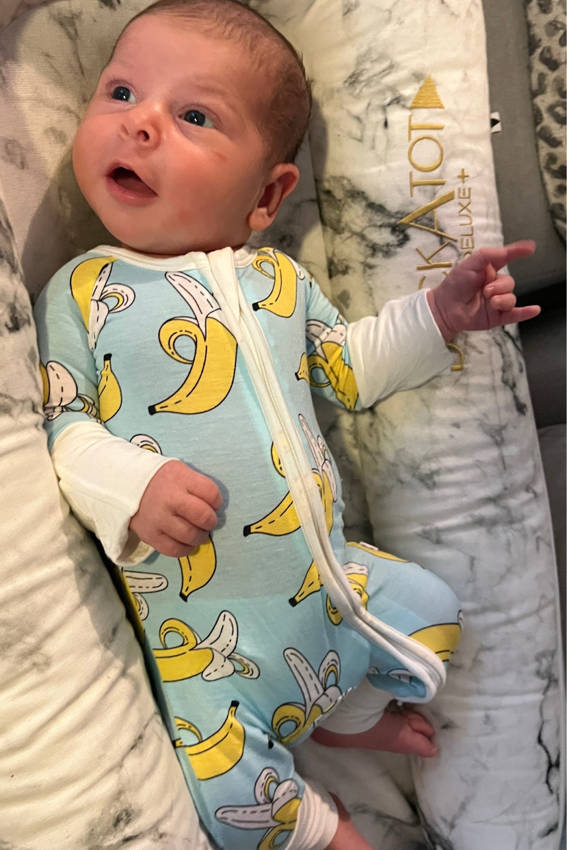 This zippy is sold out but the 2 piece pajamas are still available in some sizes. Lucca also has the custom name blanket that we get compliments on all the time!