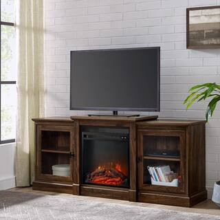 Welwick Designs 60 in. Dark Walnut Composite TV Stand Fits TVs Up to 66 in. with Electric Fireplace