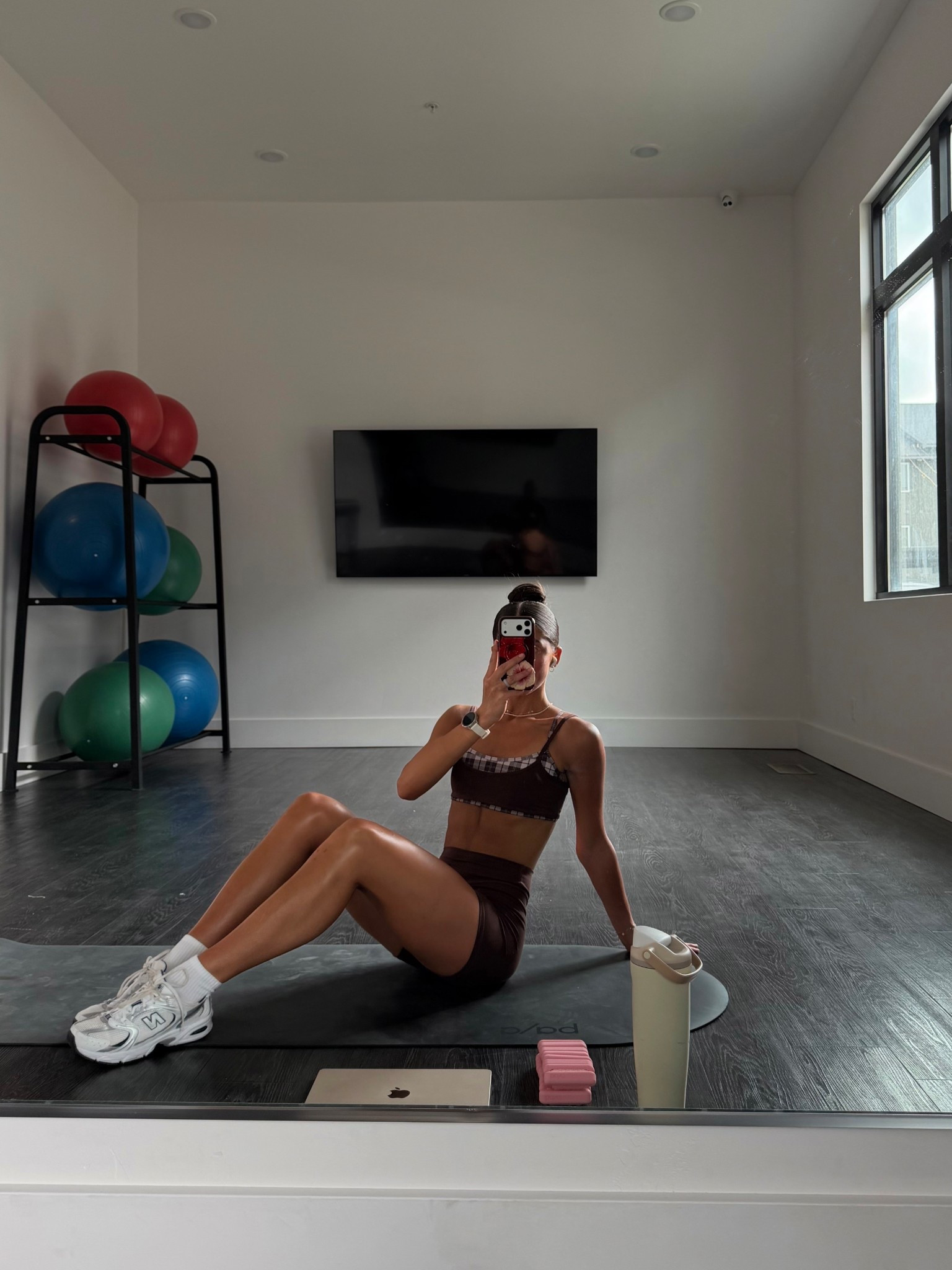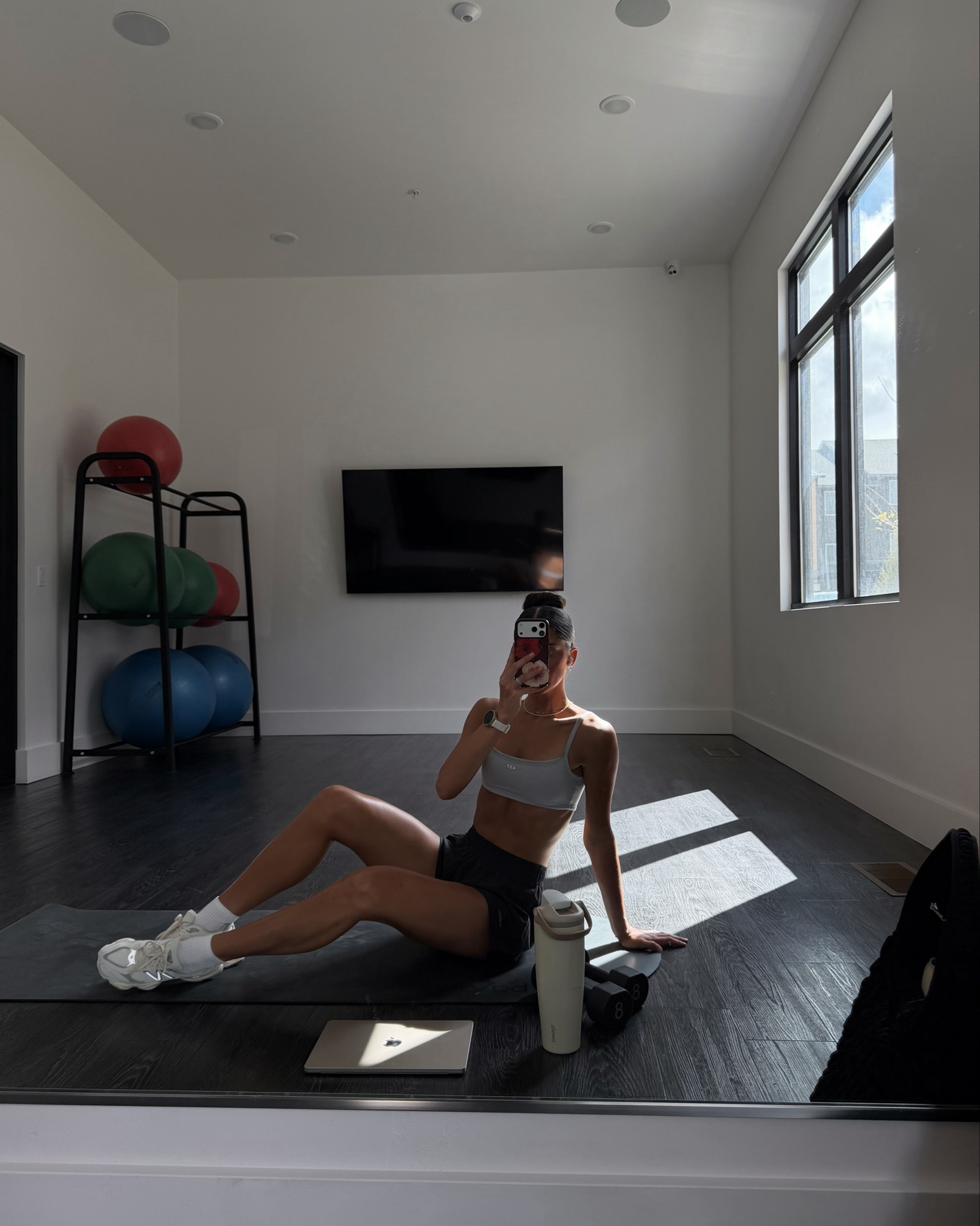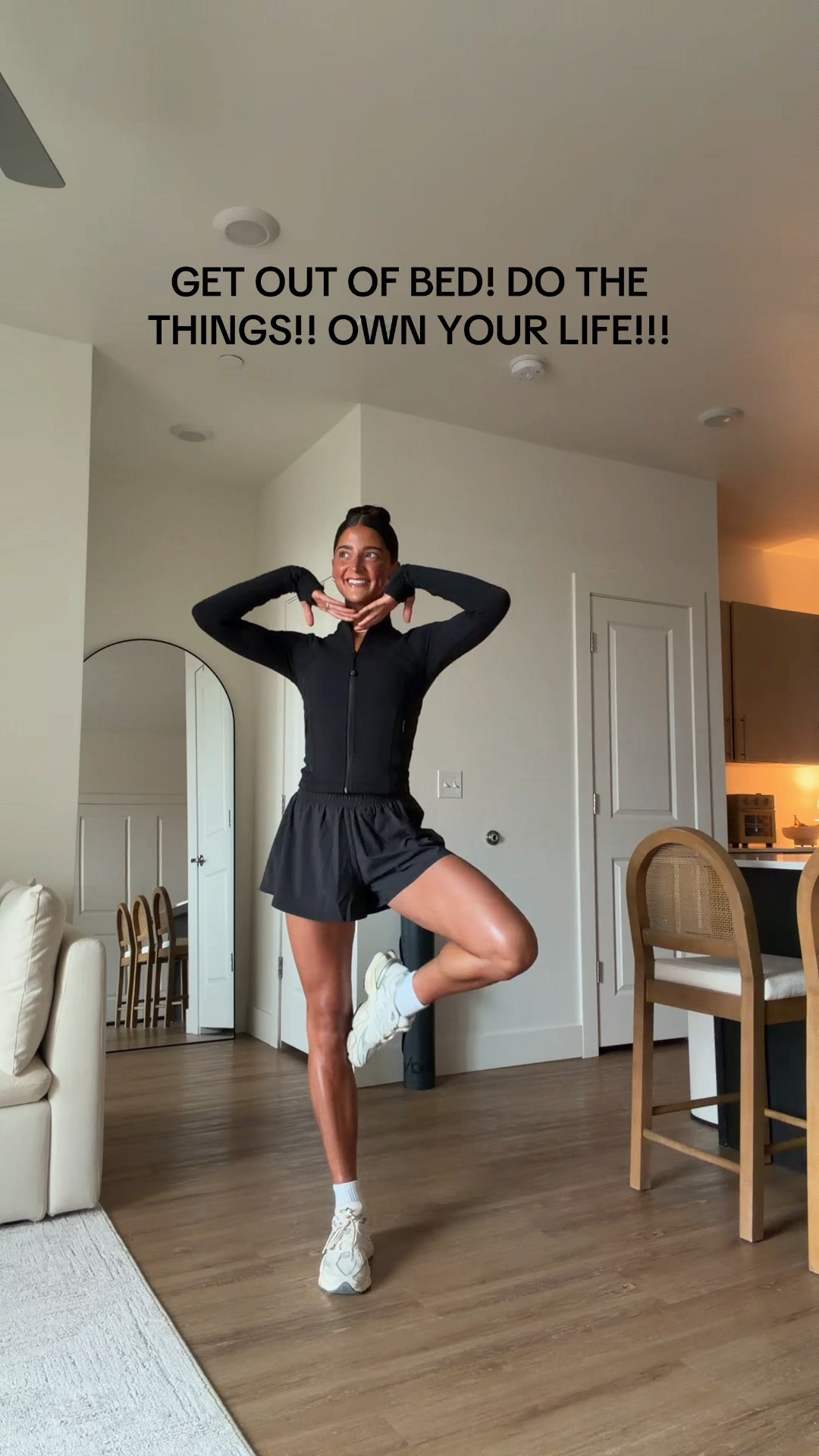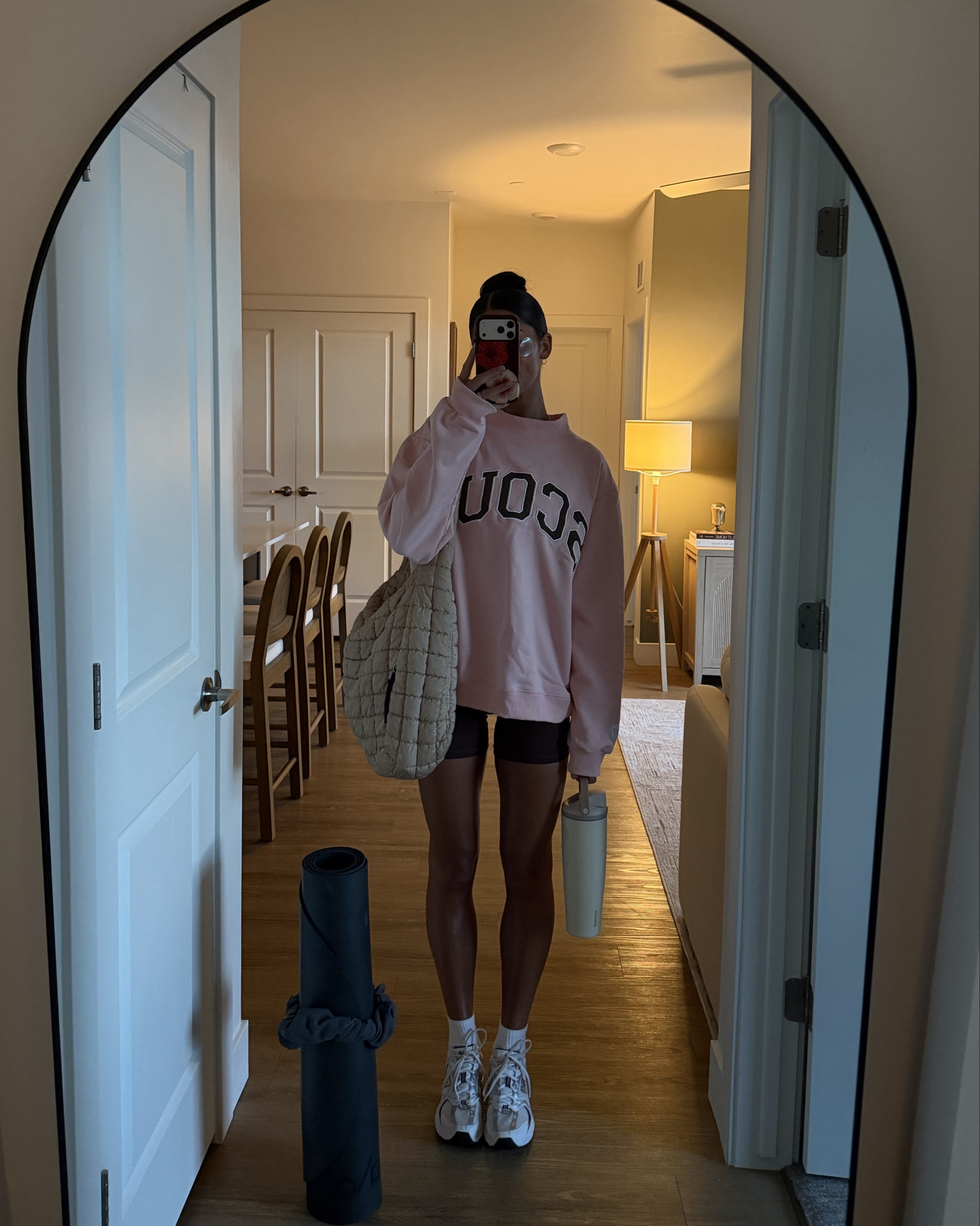 Wearing XS bra, XS bikers, S shorts, S joggers, L mockneck!