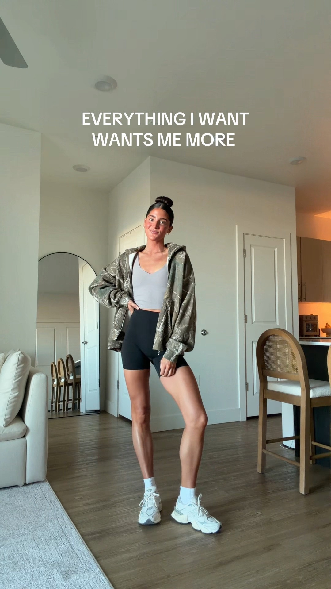 Wearing XS bra, XS bikers, S shorts, S joggers, L mockneck!
