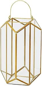 Serene Spaces Living Emerald Cut Glass Lantern, Measures 11 inches Tall, Sold Individually