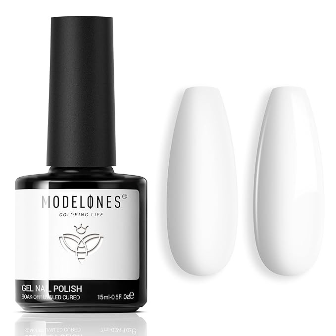 modelones Gel Nail Polish, 1 Pcs 15ml Milky Pure White Color Gel Polish Set Soak Off LED Long-Wea...