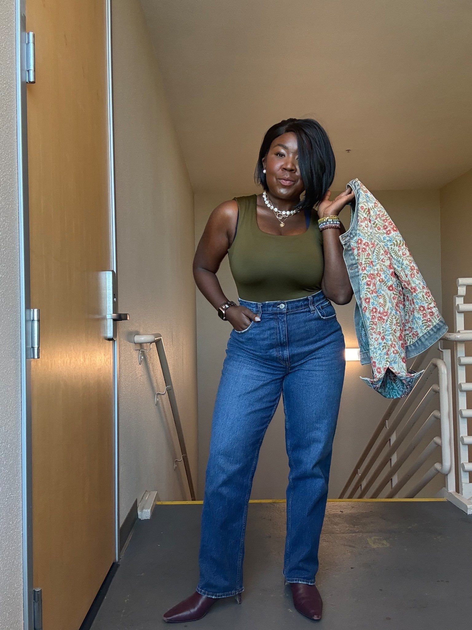 The cutest Amazon bomber jacket with barrel jeans and Amazon ahows