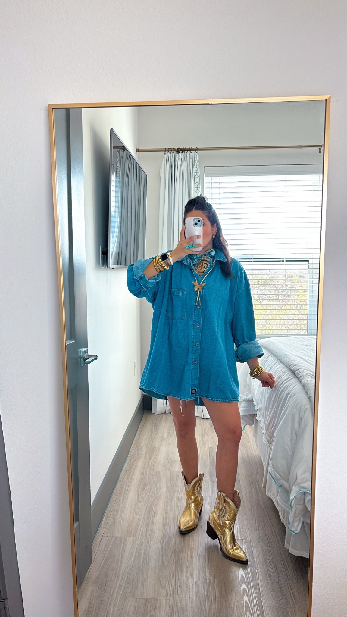 Belk | Girly Outfit | Gold Boots | Gold jewelry |