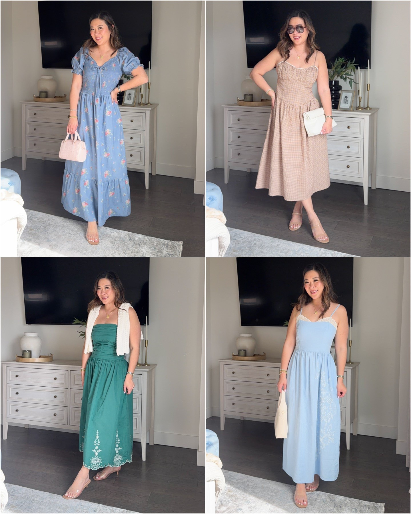 Wearing Medium in all of them except Navy maxi dress is a Small!