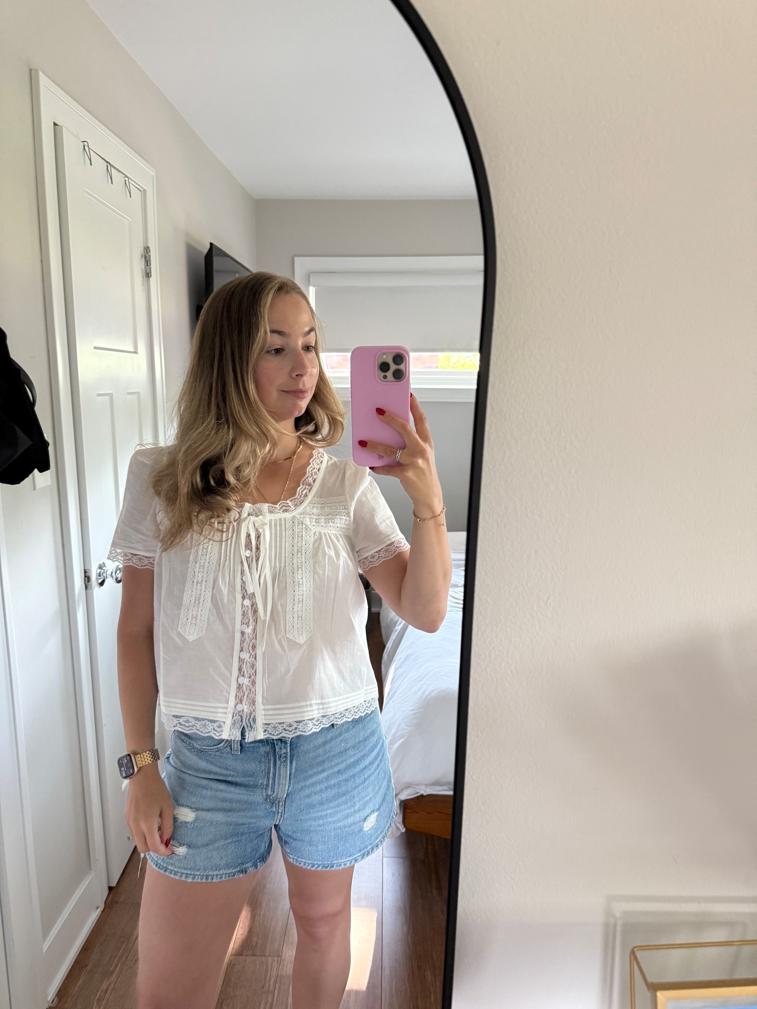 Women Tie Front Lace Trim Top Sheer Short Sleeve Scoop Neck Button Shirt Y2k Ruffle Flowy Boho Cr... | Amazon (US)