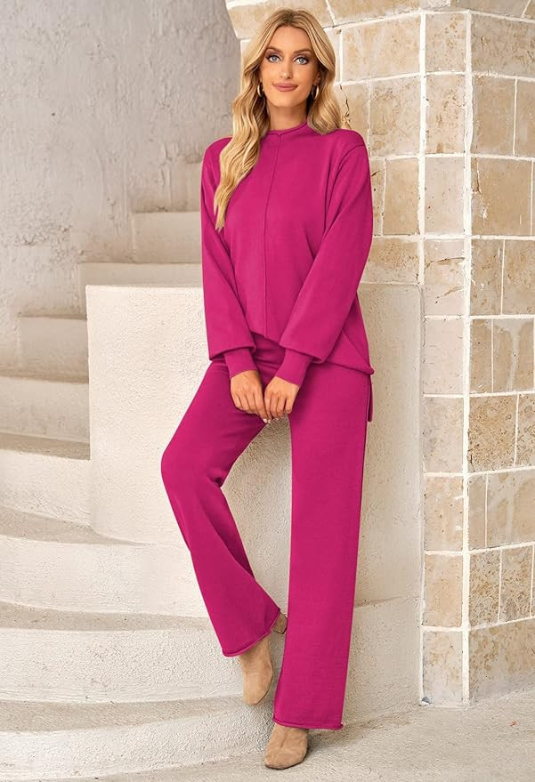 Pink Queen Women's 2 Piece Outfit Set Long Sleeve Button Knit Pullover Sweater Top and Wide Leg P...