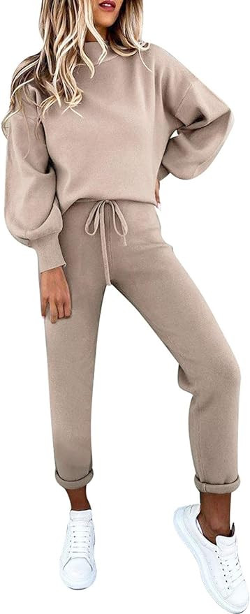 Cutiefox Women's 2 Piece Sweatsuit Outfits Lantern Sleeve Pullover Tops and High Waist Jogger Pan...
