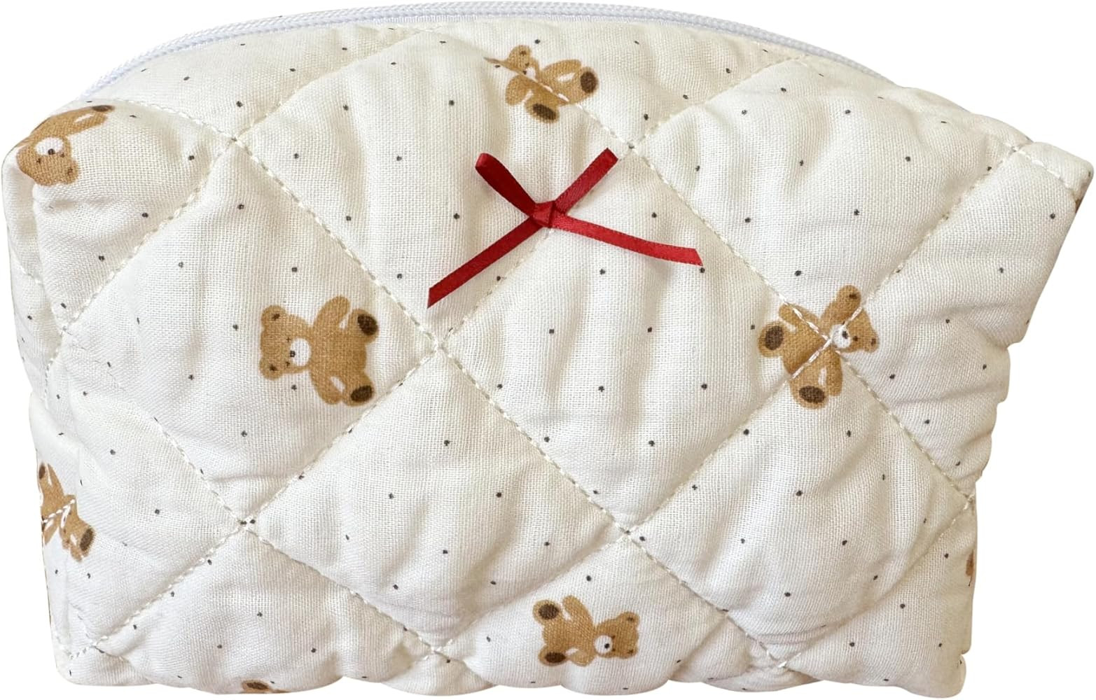 Cotton Quilted Makeup Bag Coquette Accessories Make up Bag Organizer Cute Teddy Cosmetic Pouch Tr...