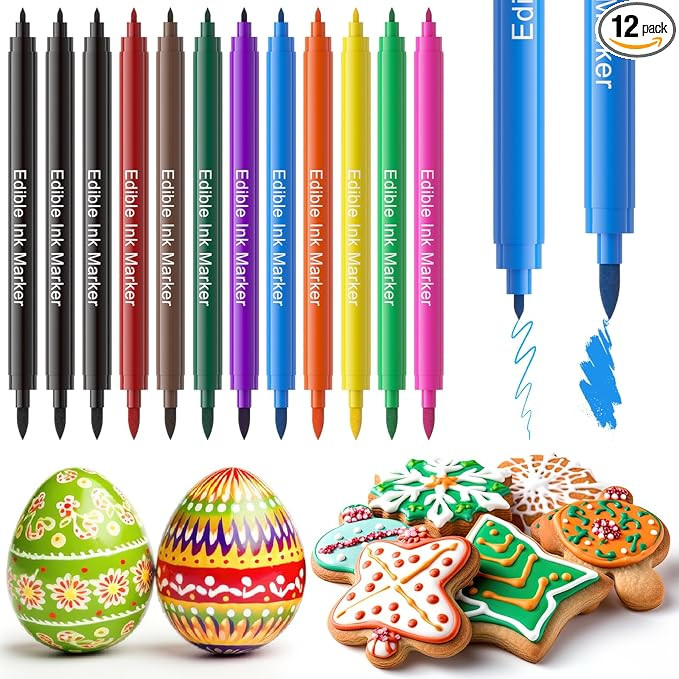 Jewem Edible Markers for Cookie Decorating,12Pcs Food Coloring Pens, Double Side Food Grade Pens ...