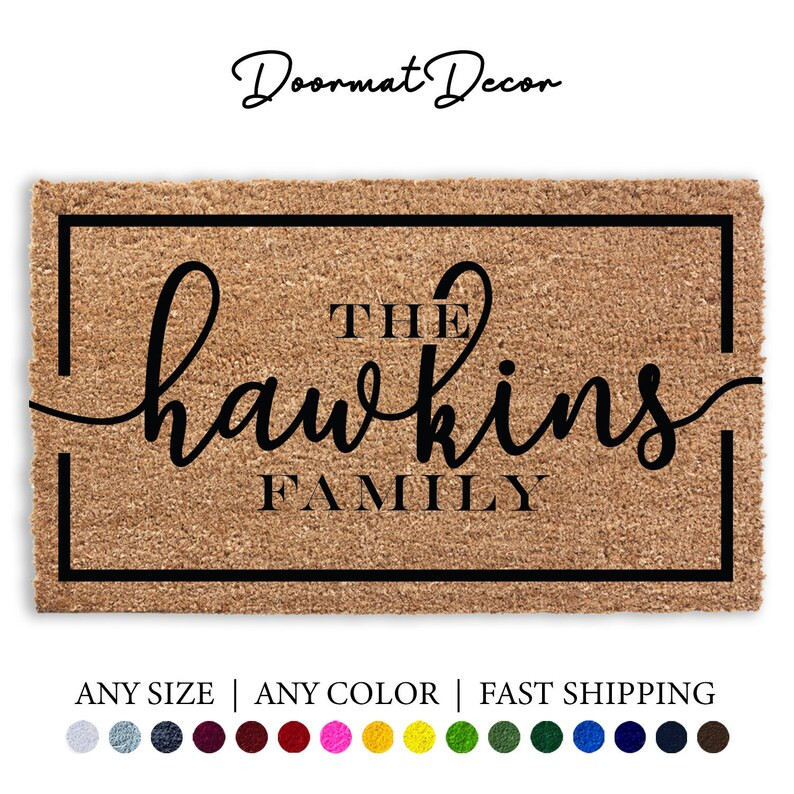 Personalized Name Doormat, Flocked Coir Door Mat, Welcome Mat, Engagement Wedding Gift, Realtor C...