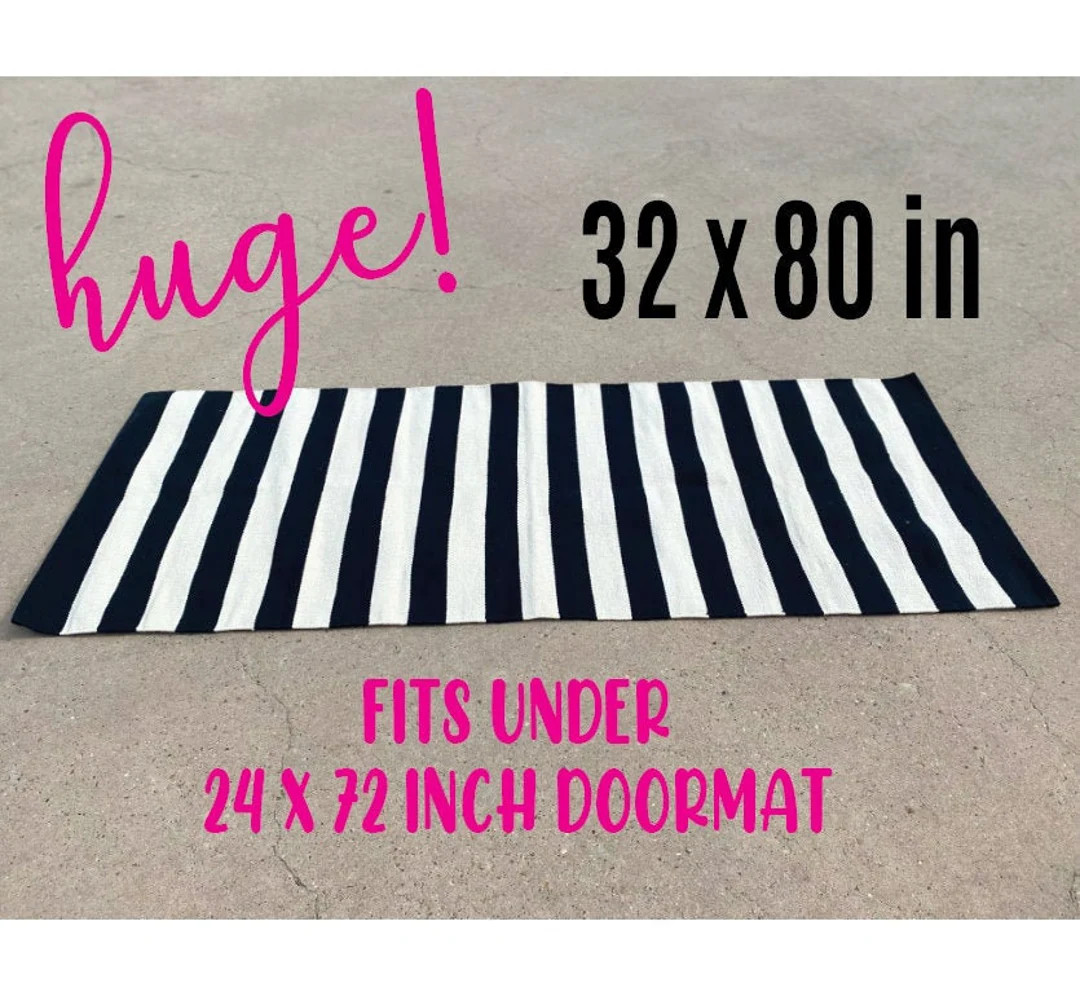 HUGE Layering Rug, 32x80 Inch Black & White Bold Stripe, Cotton Woven Rug, Indoor Outdoor Layered...