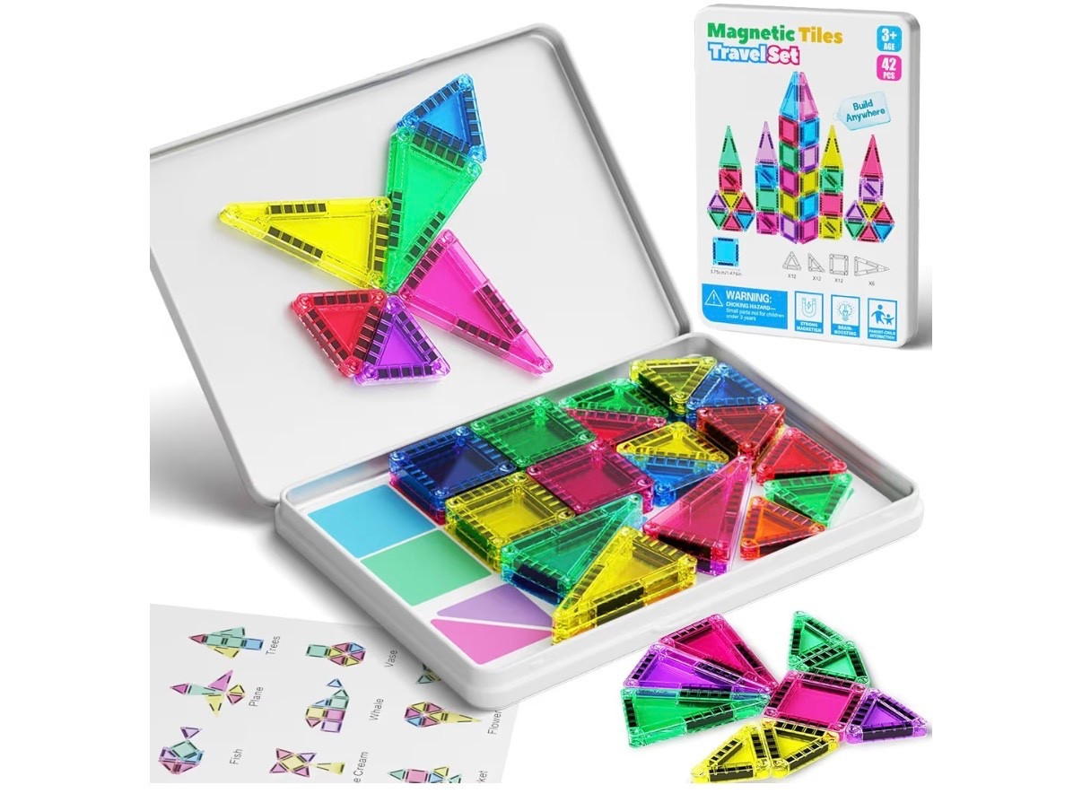 odjas Mini Magnetic Tiles Travel Set with Case 30pcs, Mini Travel Magnet Tiles, Portable Travel S... | Amazon (US)