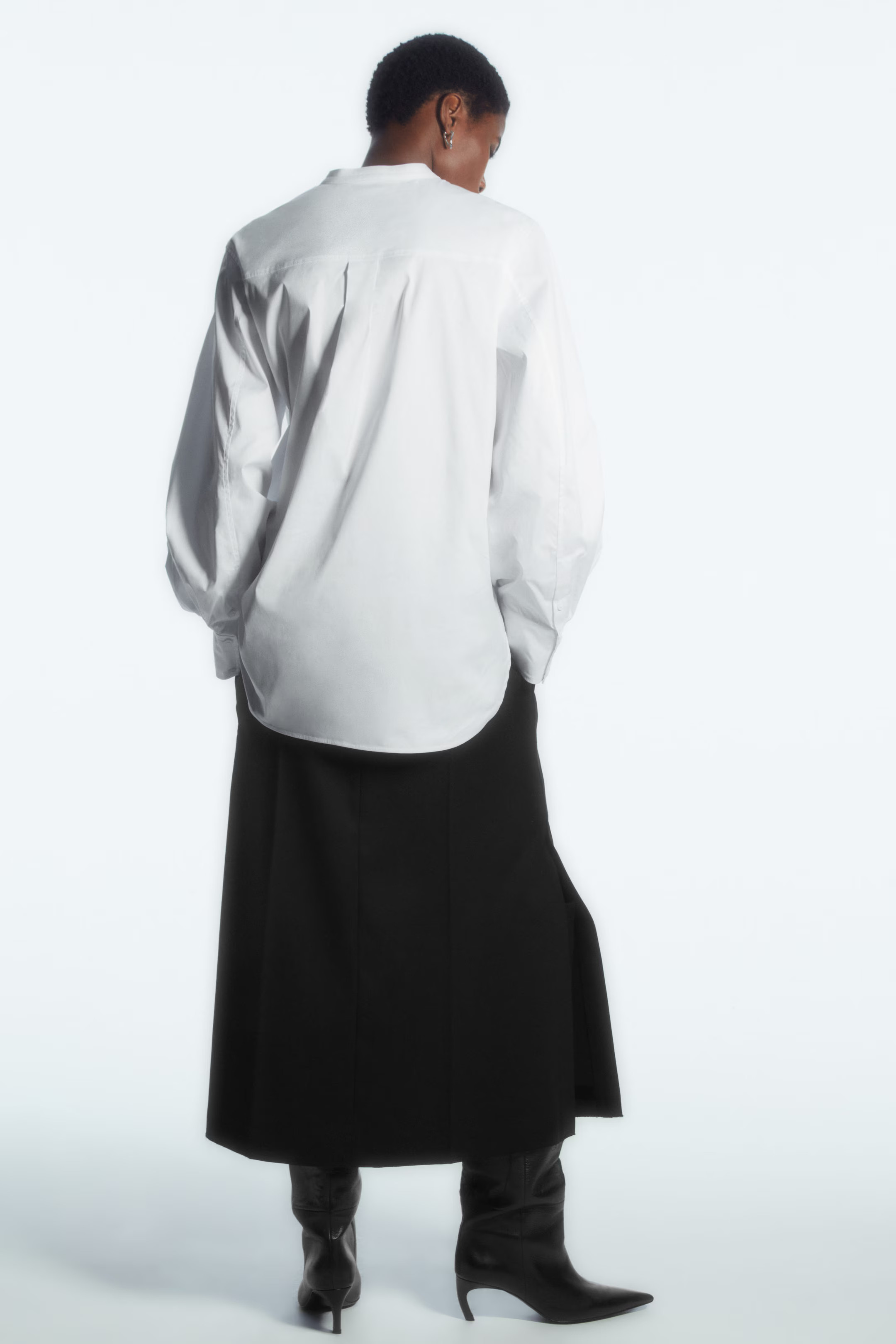 CHEMISE À COL PLASTRON EN POPELINE - BLANC