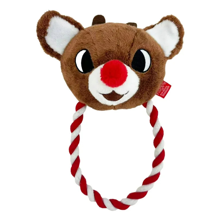 Rudolph The Red Nose Reindeer Sqeaky & Rope Dog Toy, Brown