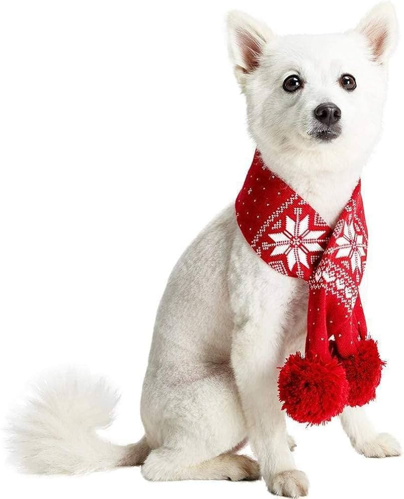 Blueberry Pet Christmas Fair Isle Dog Scarf in True Red, X-Small