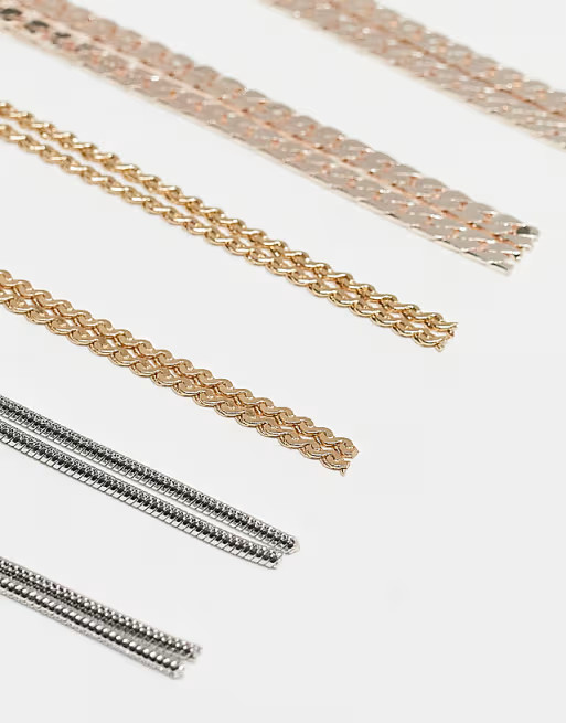 ASOS DESIGN multirow necklace twisted nugget bead and hoop in silver tone | ASOS