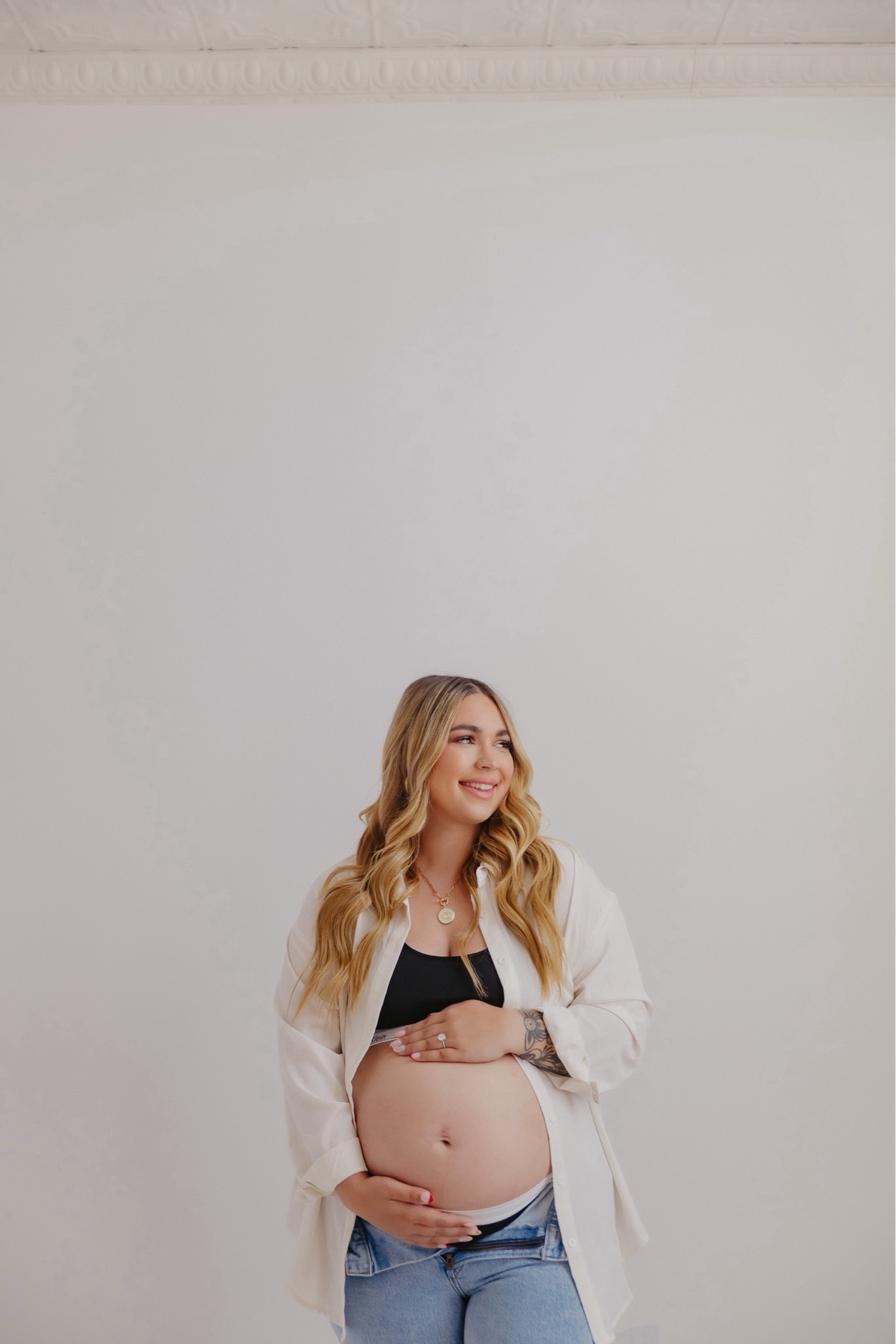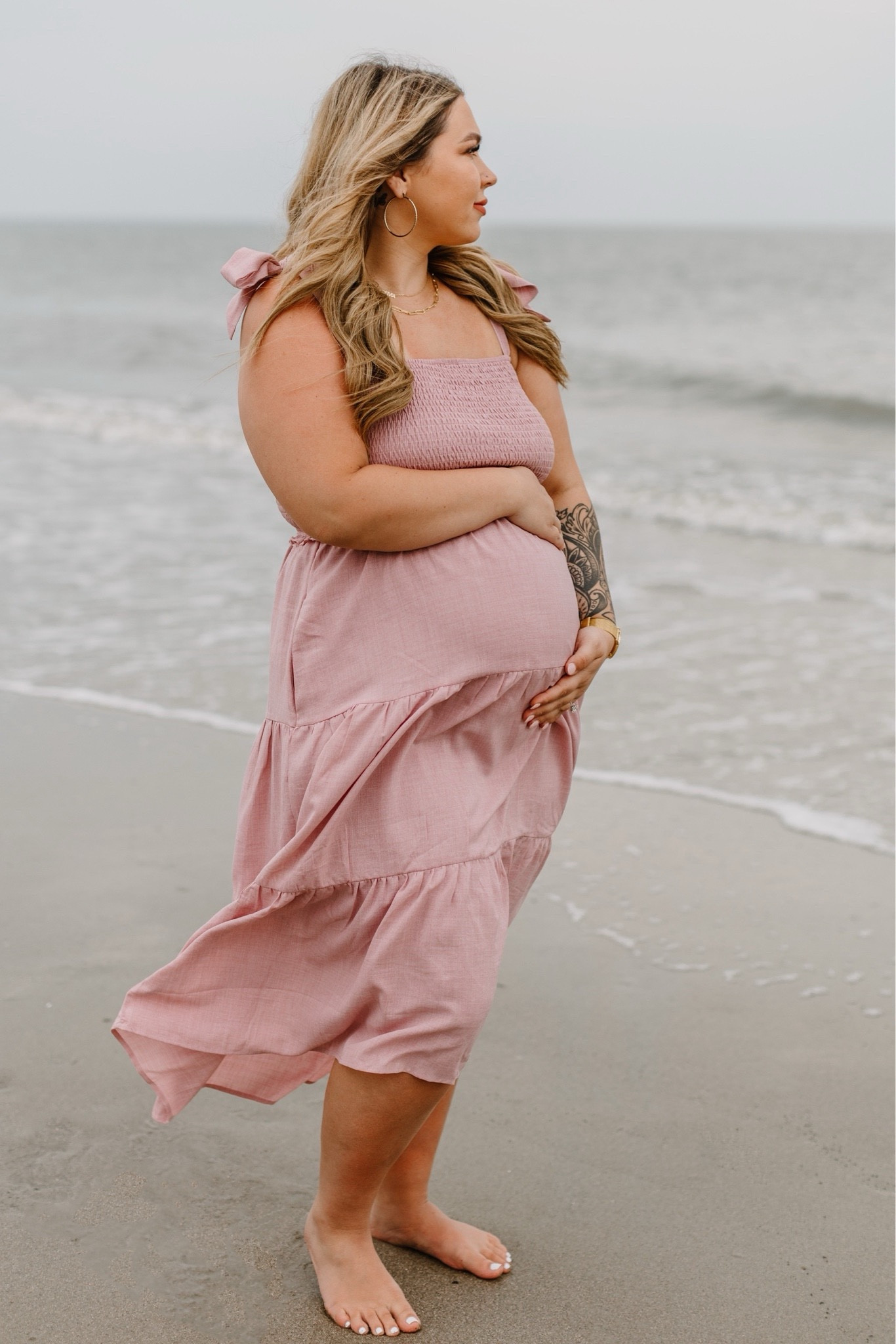 Wearing a size x-large in this bump friendly two piece swimsuit. Use code STYLEDBYLEX to save on the Walli Case. Oura ring, gold horizon