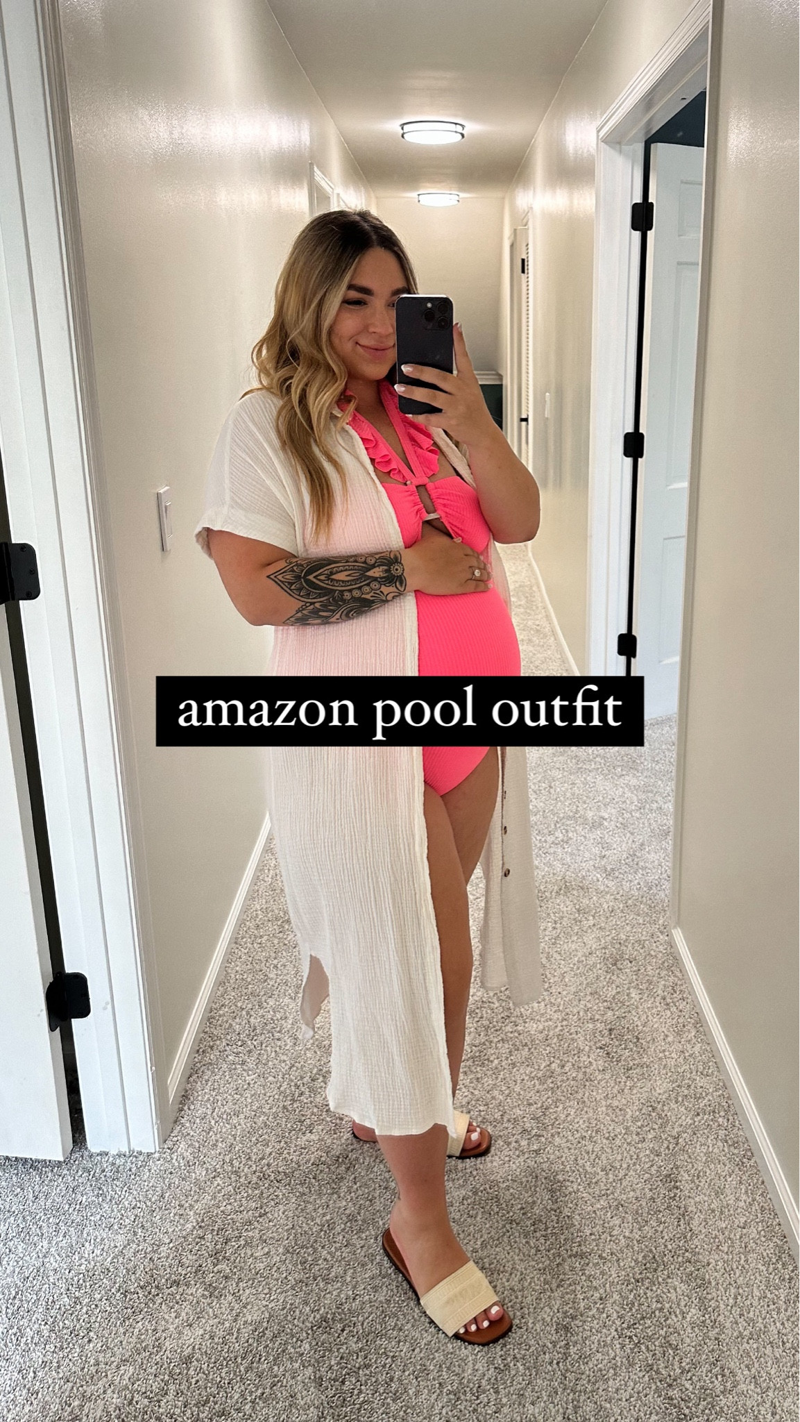 Wearing an XL in the swimsuit, large in the white coverup, sandals fit true to size, use code STYLEDBYLEX on all Walli cases, bag arrives within 8 weeks from DH Gate