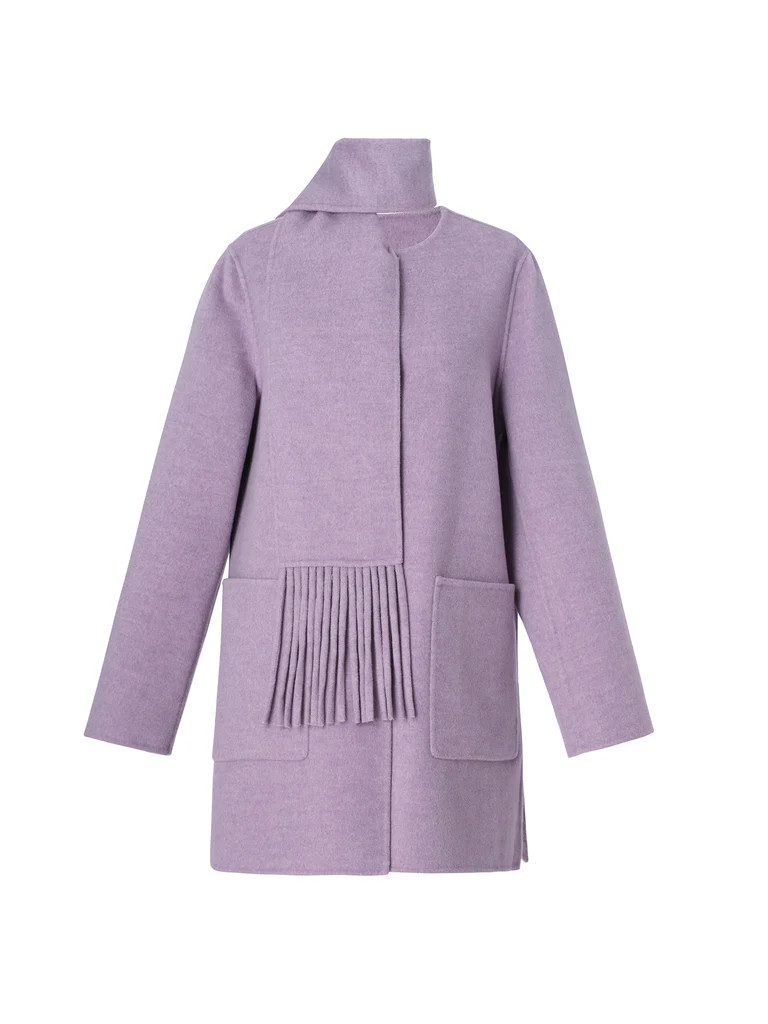 100% Wool Double-Faced Women Coat With Fringe Scarf