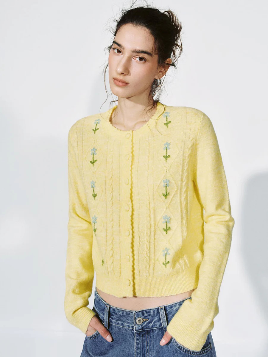 Floral Intarsia Cable Knitted Cardigan