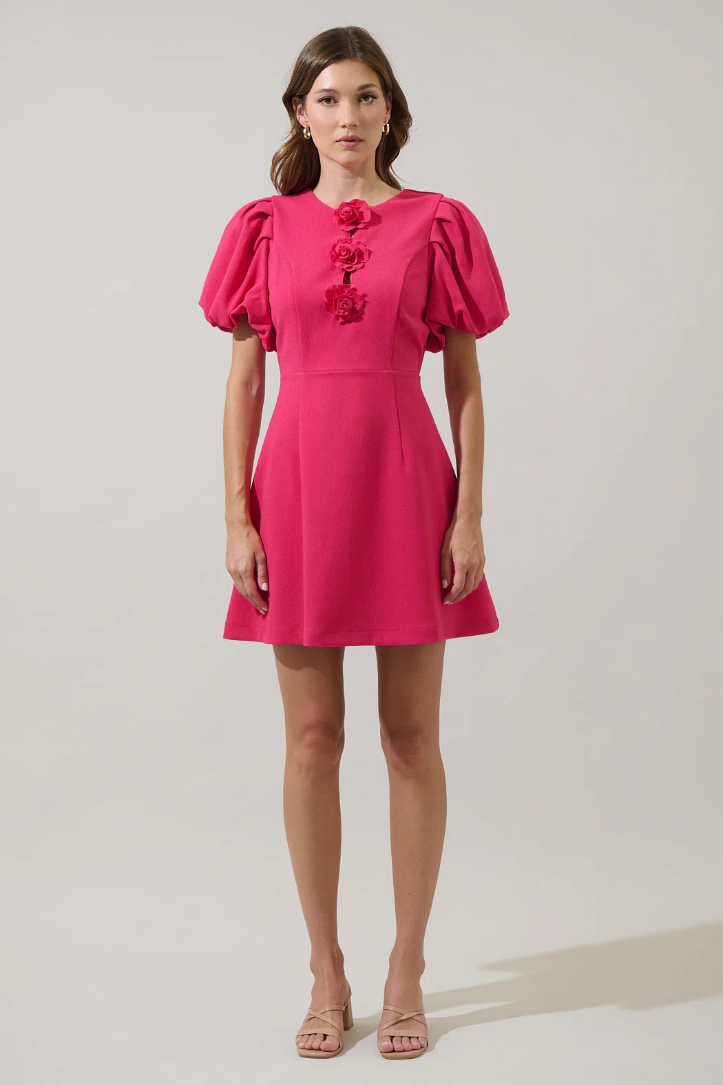 Zemira Rosette Bubble Sleeve Mini Dress