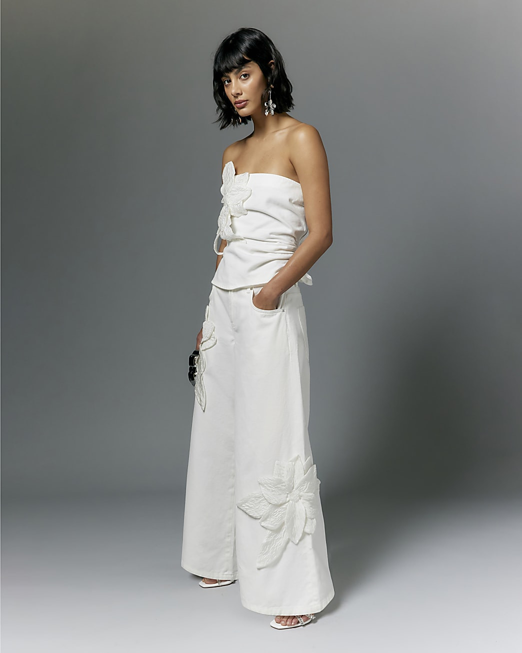 White 3D Flower Bandeau Top