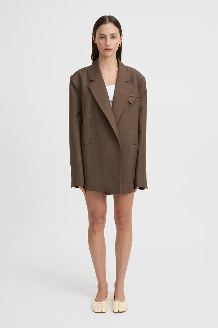 Blazers from Aje., Elka & Bec + Bridge—neutral, tailored, and perfect for work or weekend layering.